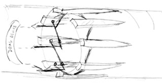 It's frustrating to follow the news of the oil leak when every attempt to staunch the flow or capture it ends in failure. I thought I could do better than some of the stuff they've tried. Golf balls?! Golf balls are smooth and round just so they will move through the air (or any fluid) freely. That's what the dimples are for! Why would you think golf balls would catch on something and plug up that huge pipe? So a better idea (I thought) has been evolving in my head these past few days, and I finally put pencil to paper to sketch it out.